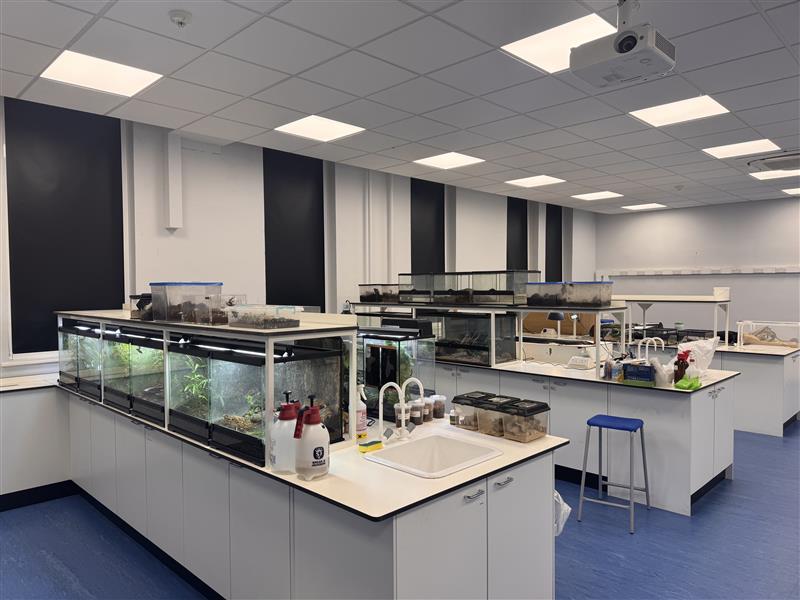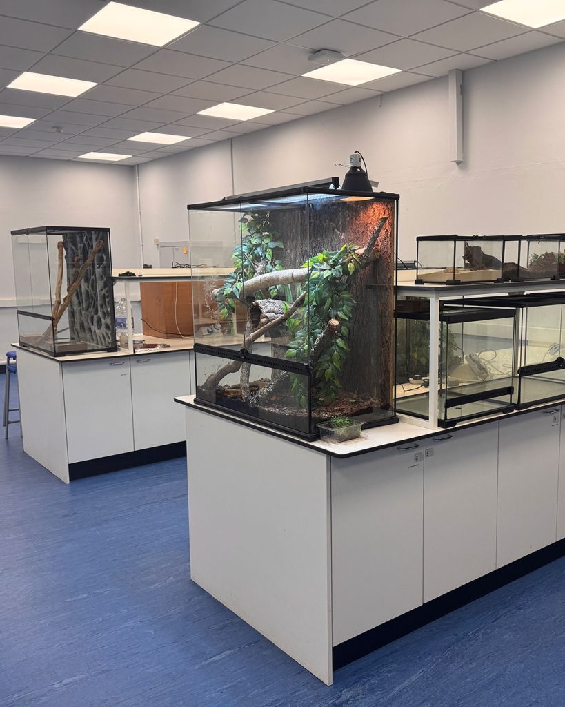 We’ve refurbished the ground and fist floor labs to provide a new student project room, reptile room and marine facility.